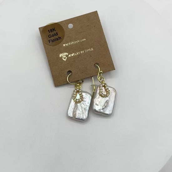 Baroque Pearl Earrings with CZ Stone Accents in Brass Finish