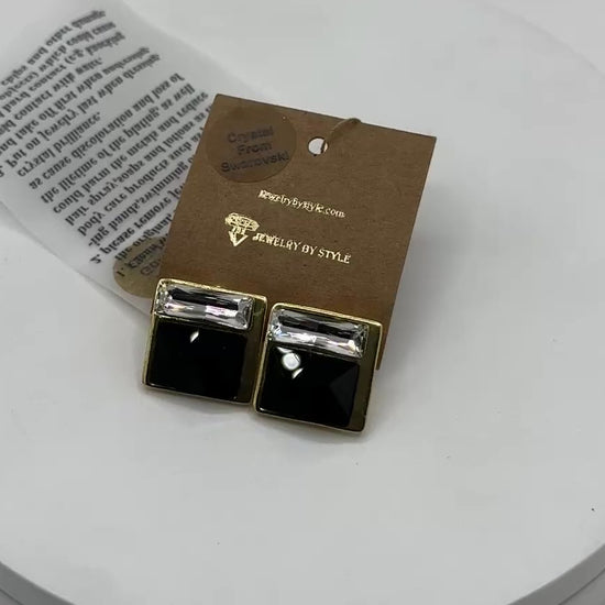 Crystal Brass 2-Stone Earrings in Jet & Crystal with Light Gold Finish