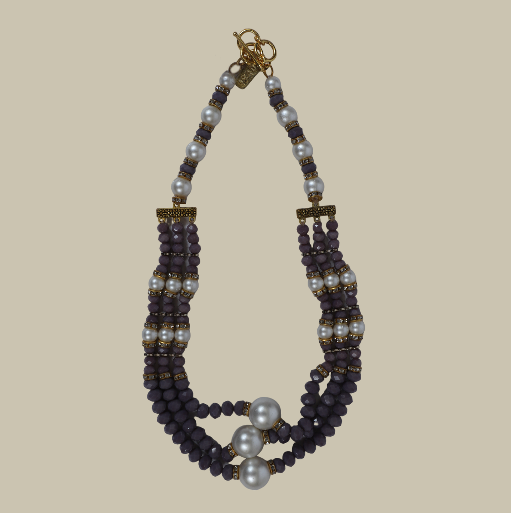 Embrace sophistication with this 3-row necklace featuring glass, plastic, and pearl beads, adding a touch of elegance to your everyday style.