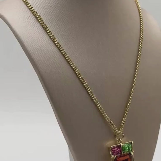 Multi-Color 3-Stone Swarovski Crystal Pendant Necklace in Light Gold Brass