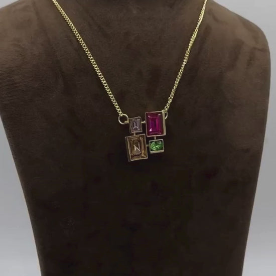 Multi-Color 4-Stone Swarovski Crystal Brass Pendant Necklace in Light Gold Finish