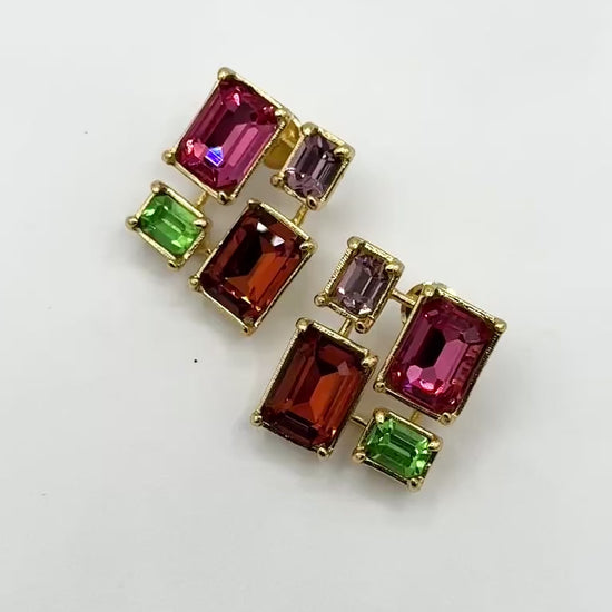 Multi-Color 8-Stone Swarovski Crystal Stud Earrings in Light Gold Brass Finish