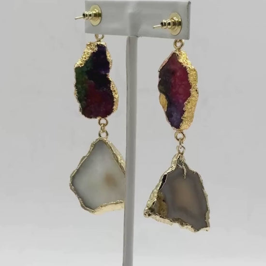 Semi-Precious Agate Stone Drop Earrings in Gold Finish