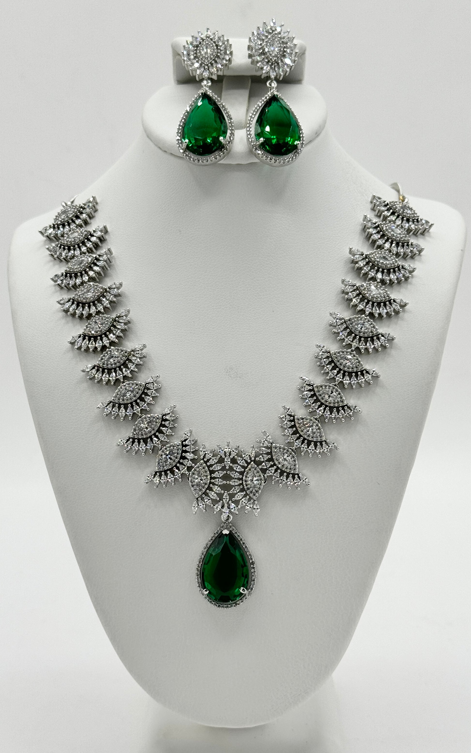 Sterling Silver Necklace for Women with green/red Topaz & Studded with White Topaz Necklace and earrings. This stunning set features a delicate blend of modern design and classic elegance, perfect for formal events or everyday sophistication, The set features a delicate necklace/earrings design, perfect for dressing up or adding a touch of elegance to your everyday look.