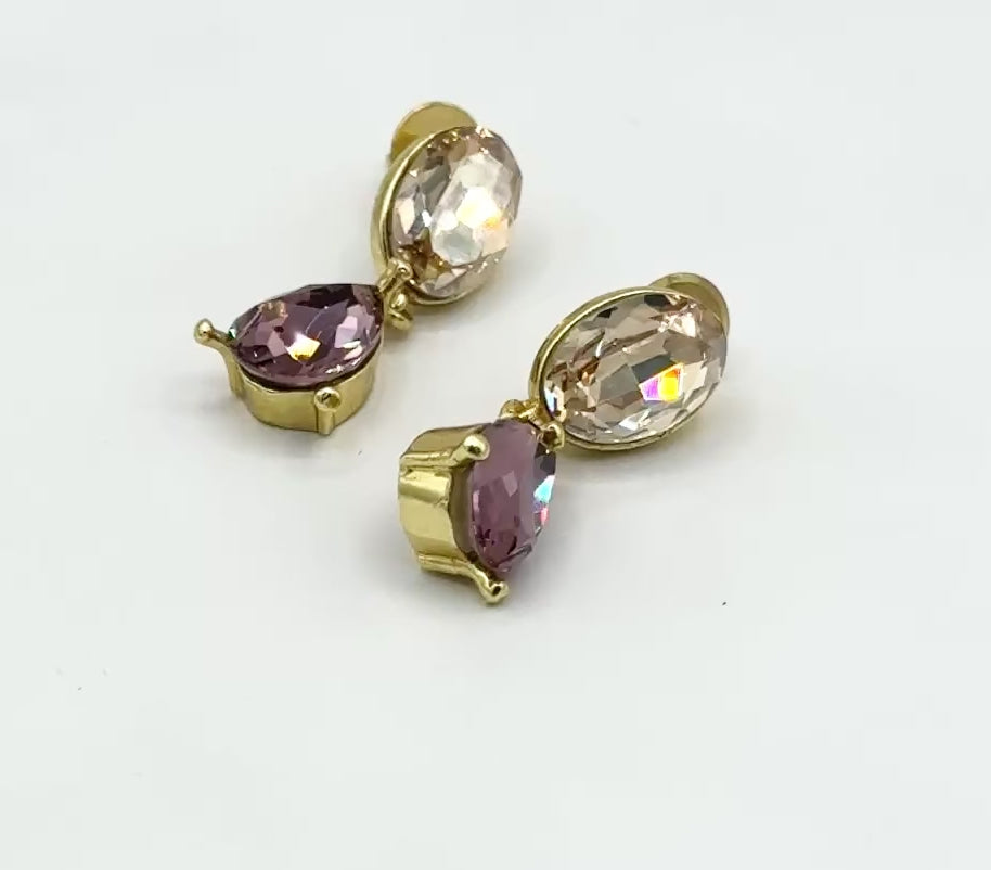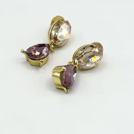 Swarovski Crystal Multi-Stone Statement Earrings – Golden Shadow & Amethyst, Light Gold Finish