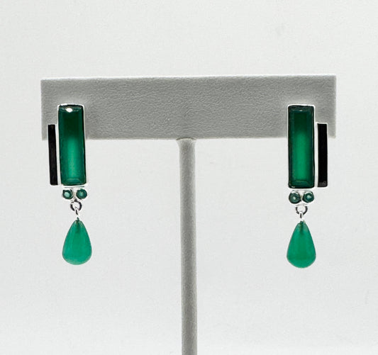 Sterling Silver Earrings With Aqua Chalcedony, Turquoise, Labradorite & black Onyx