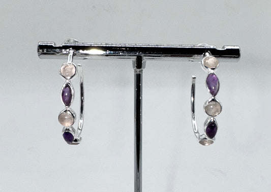 Sterling Silver Earrings with Amethyst, Rose Quartz, and Onyx