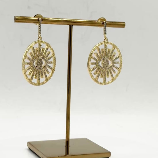 18K Gold Finish Large Evil Eye Brass Metal CZ Earrings