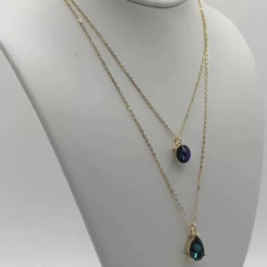 The 2-Row Stone Swarovski Crystal Layer Necklace in light gold metal finish is a stunning piece that combines elegance with vibrant color. The necklace features two rows of Swarovski crystals, creating a layered effect that adds depth and dimension to your look. The Montana and Peacock Blue crystals beautifully contrast, offering a rich pop of color that catches the light with every movement. The light gold metal finish chain complements the crystals, enhancing their brilliance and adding a sophisticated touch. Perfect for both casual and formal occasions, this necklace is a versatile statement piece that adds an extra layer of charm to any outfit. Ideal for those who appreciate a mix of bold color and timeless elegance.