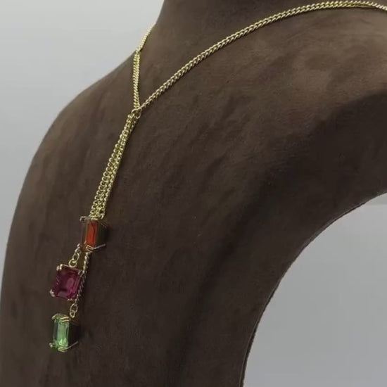 3 Stone Swarovski Stone Necklace in Square shape in Multi Colors.