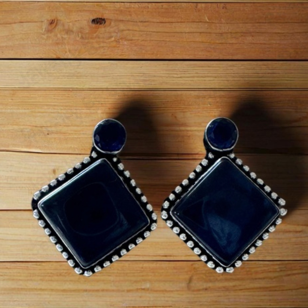 Elevate your style with our exquisite German silver oxidised earrings, featuring square stones in a variety of shapes. Available in six vibrant colors, these unique pieces offer both elegance and versatility for any occasion.