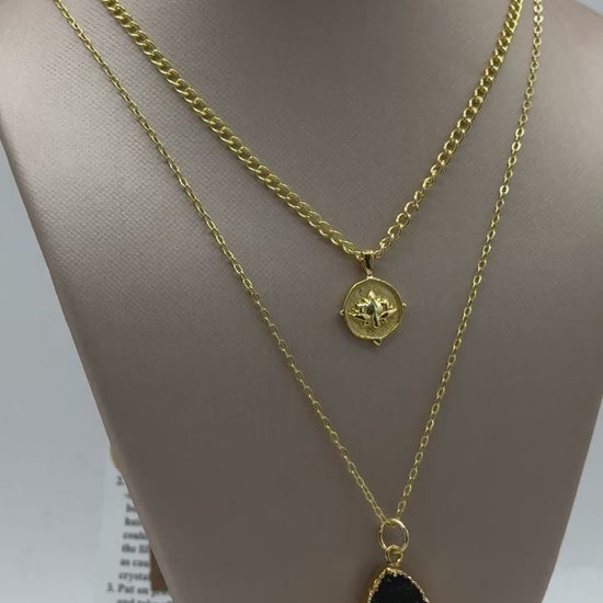 Semi-Precious Black Onyx Stone Necklace with Brass Charm