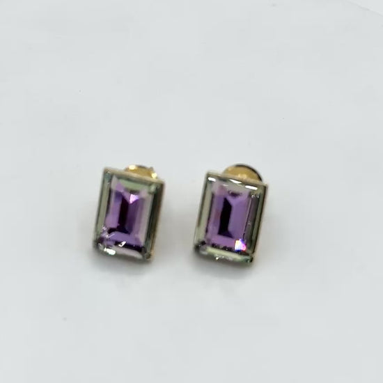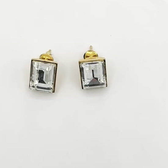 Swarovski Crystal 2-Stone Stud Earrings in Light Gold Finish