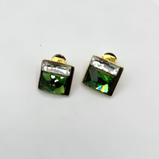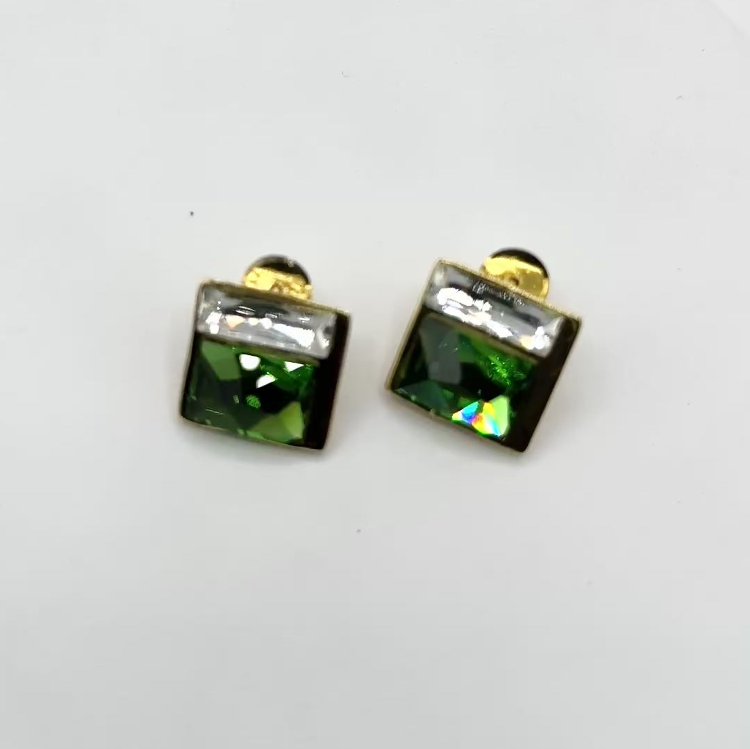Swarovski Crystal 4-Stone Stud Earrings in Light Gold Finish – Fern Green & Crystal